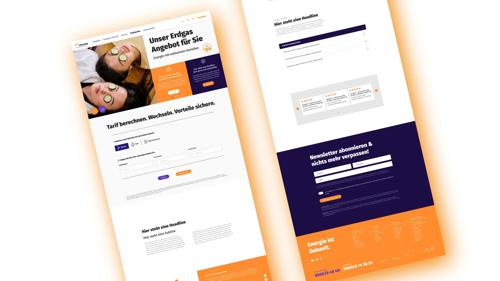rhenag hat diverse Kooperationen und Partnerlieferanten. Jeder braucht eine eigene digitale Präsenz, aber alle müssen erkennbar zur rhenag-Familie gehören. Gleichzeitig muss jeder Mandant seine eigene Identität bewahren können: Eigene Farben für Co-Branding, eigene Bildsprachen für spezifische Zielgruppen, eigene Schwerpunkte in der Kommunikation.