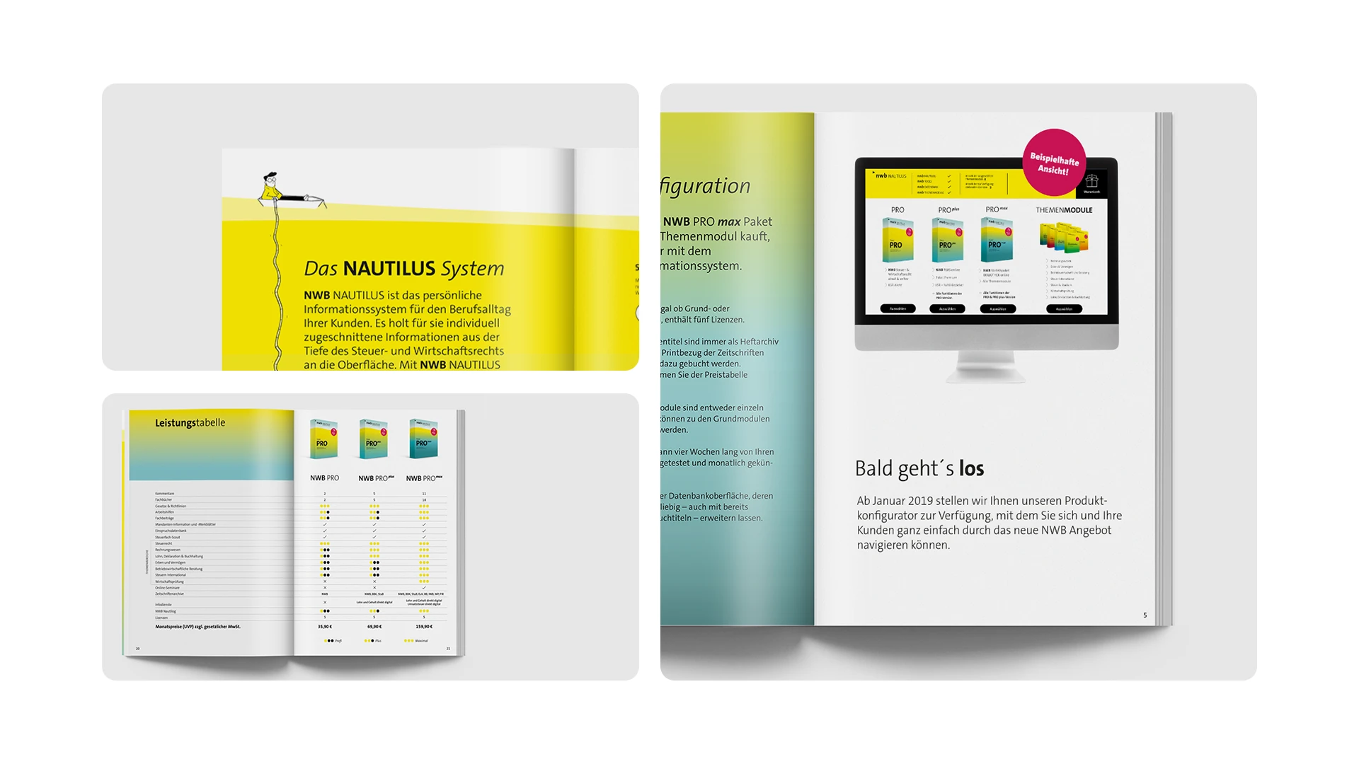 Die Entwicklung und Produktion von Printprodukten, Messe-Ausstellern sowie unterschiedlichen digitalen Kommunikationsmitteln wie Websites, webbasierten Abonnementkonfiguratoren und Filmen mit eigens erstellten 3D-Modellen und Animationen wurde mediengerecht ausgearbeitet und ist ein wirkungsvolles Instrument für die Bubble des Verlagswesens für Steuerrecht.